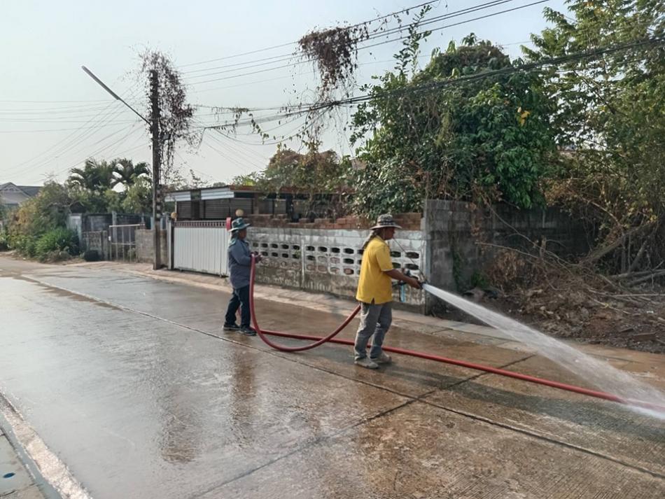 วันจันทร์ที่ 17 กุมภาพันธ์ 2568 งานป้องกันและบรรเทาสาธารณภัย เทศบาลตำบลบ้านจั่น ฉีดล้างทำความสะอาดถนนล้างถนน ชุมชนสัมพันธ์สุข เพื่อลดปริมาณฝุ่นและคราบสกปรกที่สะสมบนพื้นถนน เพิ่มความปลอดภัยในการสัญจร... [17 กุมภาพันธ์ 2568]