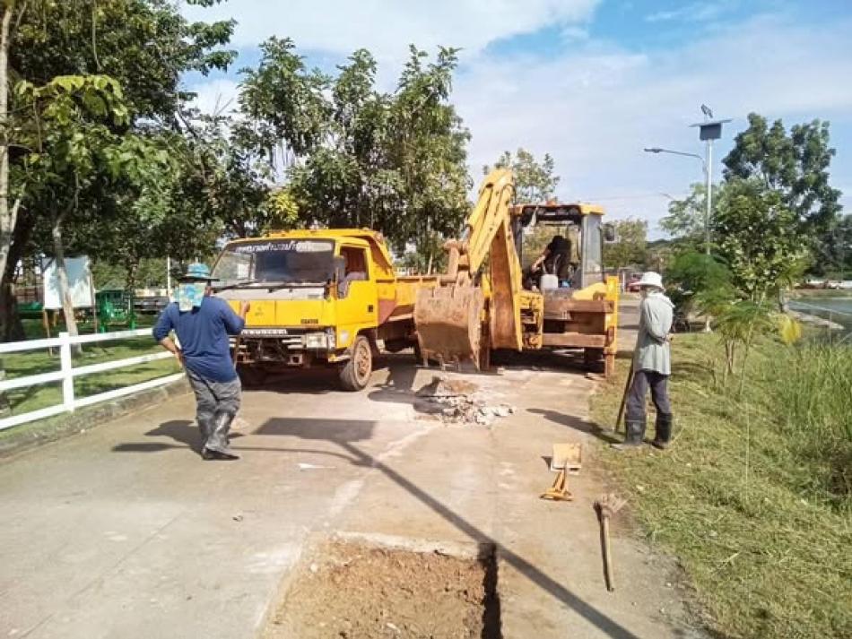 พันเอก (พิเศษ) ทวีศักดิ์ สมพงษ์ นายกเทศมนตรีตำบลบ้านจั่น มอบหมายให้กองช่าง ปรับผิวถนนเพื่อเตรียมเทปูนซ่อมแซมพื้นผิวถนน บริเวณสวนสาธารณะเฉลิมพระเกียรติหนองกลิ้ง เพื่อให้มีปลอดภัยแก่ประชาชนที่มาใช้บริการ